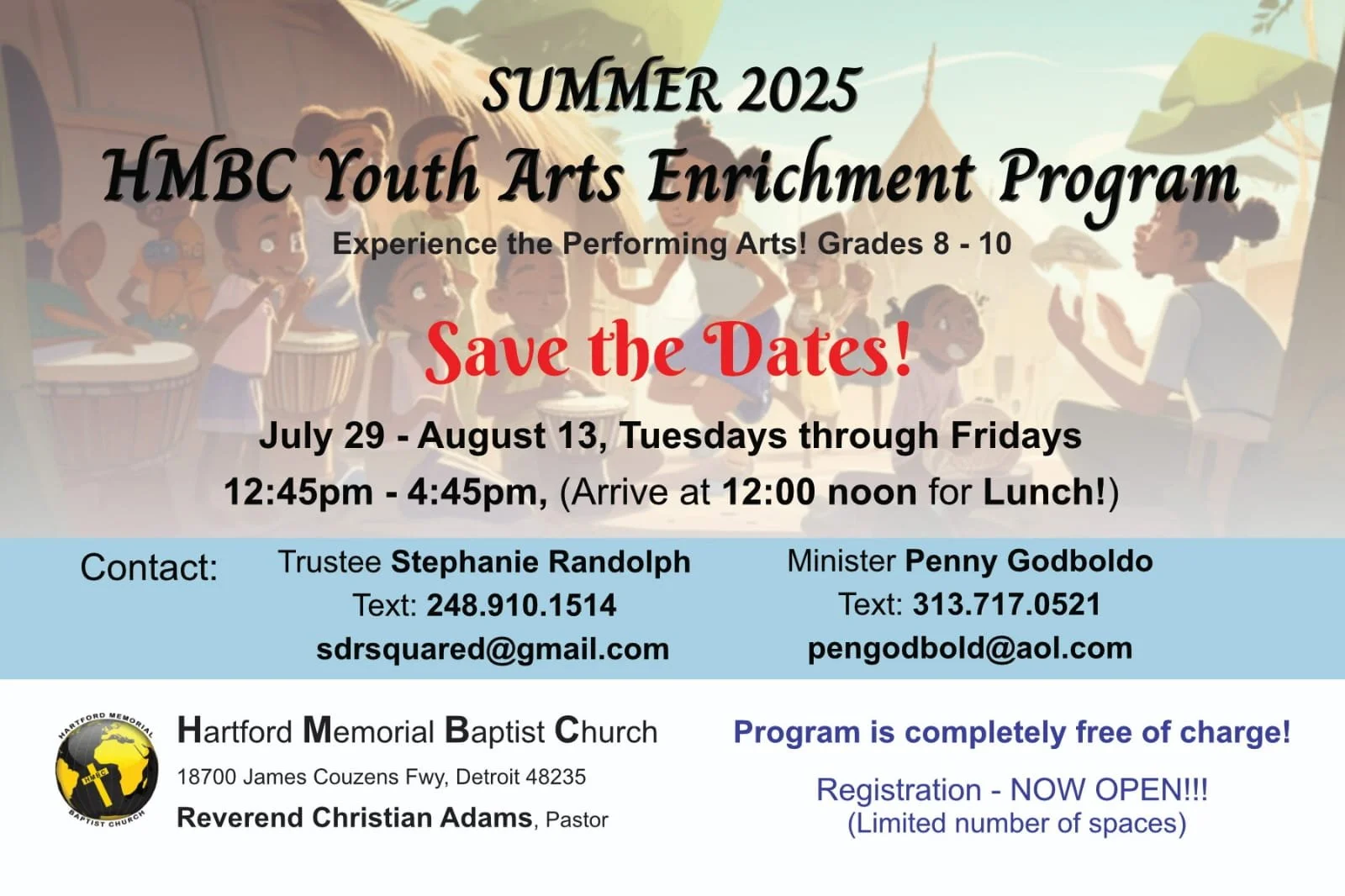Penny Godboldo is a dance artist and a master teacher and is a Certified Instructor in the Katherine Dunham Technique. She incorporates her pedagogy as teacher and her larger philosophical view that dance is life. It is a methodology developed through extensive research in dance and history. Her work is informed by her travel to Haiti, Cuba, Benin, Brazil, Japan, China, and other countries, and her role as chair of the Marygrove College dance department for two decades. Penny travels internationally, choreographing, leading workshops and educating students.